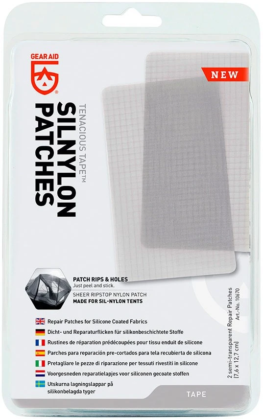 Men med disse Tenacious™ Silnylon Patches, der er fremstillet af stærk og let nylon, som på bagsiden er forsynet med et silikonebaseret klæbemiddel, kan du nemt og problemfrit påføre reparationsplasteret på teltets oversejl, den vandtætte pose eller andet, der trænger til en både slidstærk og pålidelig lapning. Overfladen er forseglet med en vandtæt silikonebelægning for at modstå både vaskemaskinen og alle former for vejrlig, som Moder Natur kaster i hovedet på dig.