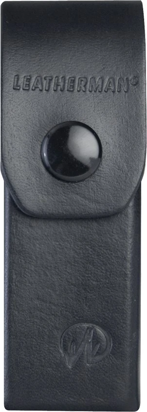 Etuiet, som elegant er præget med Leathermans navn og logo, åbnes og lukkes med robust knaplukning og kan selvfølgelig fastgøres i bæltet.