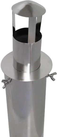 Gstove Rain Cover er designet til at modvirke, at regn, sne og irriterende insekter finder ned i åbningen mellem ovnens skorsten og skorstenens beskyttelsesrør.